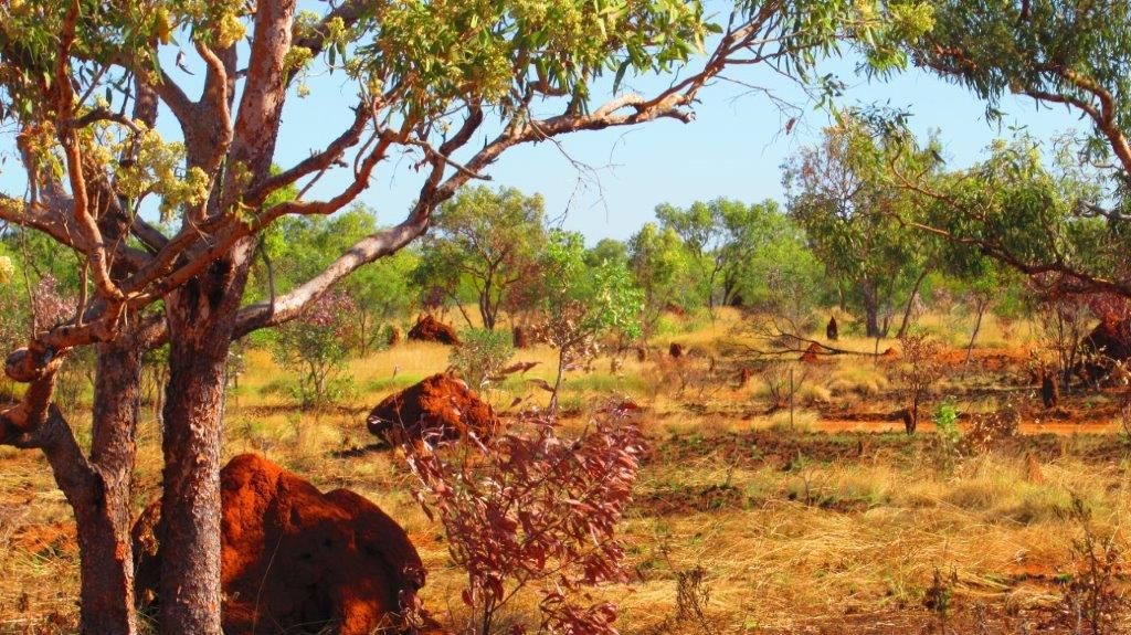 golden, and brown termite mounds dotted the landscape, so dense in some areas